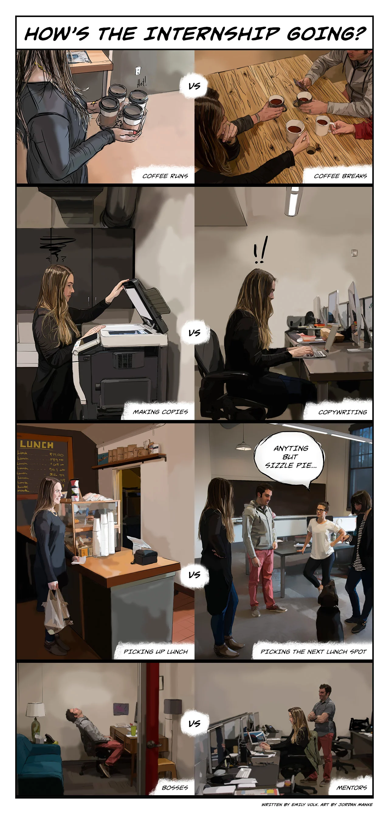 What I want to do with this webcomic is to show you a fly’s eye view of what it’s like being an intern at Struck, show you what I’ve learned, and take the normal “new kid” anxieties and prod and poke them onto the page/screen. I believe if you place those kinds of things in front of you, laid out all in plain sight, they end up looking a lot less big and scary.